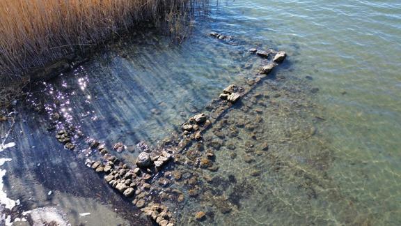 Göl sularının çekilmesiyle tamamen görünür hâle gelen kalıntıların, İznik sahil bandında kumsalın hemen yanında yer aldığı görülürken, yapıyı fark eden ekip heyecan yaşadı.
