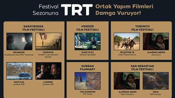 TRT destekli ve ortak yapımı filmler, sinema dünyasının en prestijli etkinliklerinde boy gösterecek. 31'inci Saraybosna Film Festivali, 82'nci Venedik Film Festivali, 50'nci Toronto Film Festivali ve 73. San Sebastian Film Festivali'nde TRT destekli ve ortak yapımı 8 film yarışacak. Saraybosna Film Festivali'nin Uluslararası Kısa Film Yarışması'nda 'Prosedür' filmi, Coproduction Market bölümünde 'Varsayım' projesi yer alacak. 'Work in Progress' bölümünde de 'Mavi Kuş' ile Türkiye-Hırvatistan ortak yapımı 'Looping' (Döngü) filmleri yarışacak. Venedik Film Festivali'nin Venezia Spotlight bölümünde 'Made in EU' filmi dünya prömiyerini yapacak Film ayrıca festivalde yarışacak. Toronto Film Festivali'nde 'Aldığımız Nefes' (As We Breath) filmi, festivalin Discovery bölümünde ve 'Palestine 36' filmi ise festivalin gala gösterimleri bölümünde dünya prömiyerini yapacak ve yarışacak. 73'üncü San Sebastian Film Festivali'nde 'Aldığımız Nefes' (As We Breath) filmi, New Directors (Yeni Yönetmenler) bölümünde Avrupa prömiyerini gerçekleştirecek. 'Veha' filmi de festivalin Work in Progress Europa bölümüne seçildi.