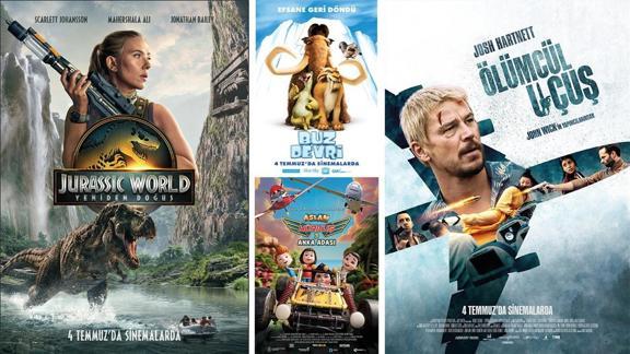 Bu cuma da birbirinden farklı türde yerli ve yabancı filmler vizyona giriyor. Dramdan komediye, korkudan gerilime kadar önemli yapımların vizyonda olacağı 4 Temmuz Cuma günü, sinemaseverlere farklı dünyaların kapılarını aralayacak. Hali hazırda vizyondaki filmlerin yanı sıra "Jurassic World: Yeniden Doğuş", "Buz Devri", "Aslan Hürkuş 3: Anka Adası", "Musibet", "Ölümcül Çağrı", "Cehennem", "Ölümcül Uçuş" ve "Cin Bebek 3" filmleri 4 Temmuz Cuma haftasının yeni vizyonları arasında yer alıyor.
