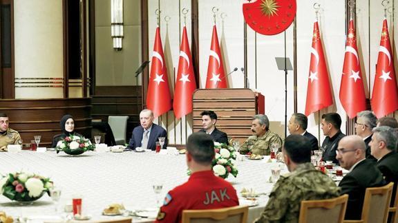 BAŞIMIZ DİK: Devletimiz üzerinde ameliyata kalkışanlara en güçlü cevapları vererek bugünlere geldik. Allah ömür verdikçe yine bu topraklarda başımız dik, alnımız ak şekilde yaşamaya devam edeceğiz. Gabar'da aşamadılar, Cudi'de aşamadılar, Hendek'te aşamadılar. Siz oralarda, onları inlerine gömdünüz. Türkiye'nin güvenliği için nasıl büyük bir özveri de bulunduğunuzu gayet iyi biliyorum, Rabbim hepinizden razı olsun, ayağınıza taş değdirmesin diyorum.