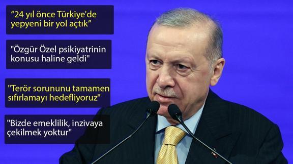 Başkan Erdoğan, 24 yıldır burada olduklarını ve yıllarca burada olacaklarını söyledi. Yetişmiş, tecrübeli, birikimli kadrolarla nice yıllar Türkiye'nin, milletin hizmetinde koşturacaklarını belirten Erdoğan, şunları kaydetti: