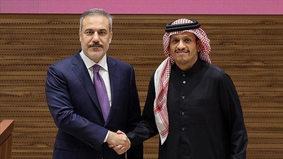 Katar temasları kapsamında Cumhurbaşkanı Recep Tayyip Erdoğan'a eşlik eden Dışişleri Bakanı Hakan Fidan, ikili temaslarını sürdürüyor. Bakan Fidan, başkent Doha'da Katar Başbakanı ve Dışişleri Bakanı Şeyh Muhammed bin Abdurrahman Al-Thani ile görüştü.
