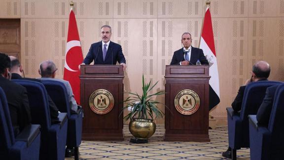 Fidan, Mısır Dışişleri Bakanı Bedr Abdulati ile Mısır'ın El-Alameyn kentinde düzenlenen ortak basın toplantısında konuştu.