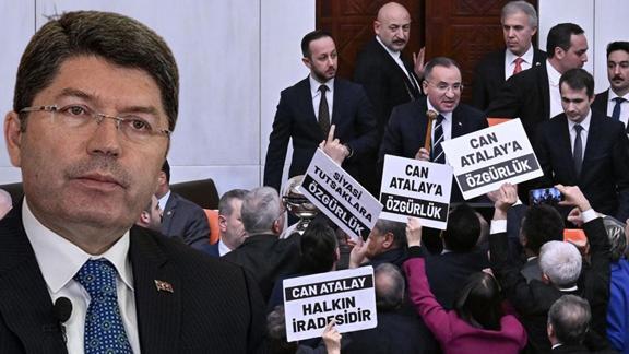 Adalet Bakanı Yılmaz Tunç, Can Atalay hakkındaki kararın Meclis kürsüsünden okunduğu sırada CHP, DEM ve TİP vekilleri tarafından yapılan provokasyona sert tepki gösterdi.