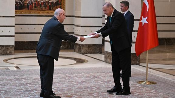 Cumhurbaşkanlığı Külliyesi'ndeki kabulde, Meksika Büyükelçisi Francisco Javier Diaz De Leon, Mısır Büyükelçisi Wael İbrahim Ali Badawi el Sheikh, Sri Lanka Büyükelçisi Niluka Kadurugamuwa ve Litvanya Büyükelçisi Marius Janukonis, Cumhurbaşkanı Erdoğan'a güven mektuplarını sundu.