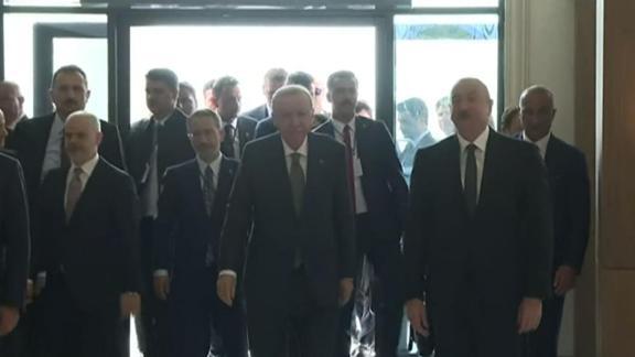 Burada Aliyev ile baş başa görüşen Erdoğan, daha sonra Pakistan Başbakanı Şahbaz Şerif ve Aliyev ile üçlü görüşme gerçekleştirdi.