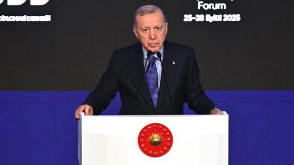 Küresel rekabetin dozunun her geçen gün arttığını, belirsizlik ve istikrarsızlık anaforunun dalga dalga yayıldığını kaydeden Erdoğan, "Kriz ve ihtilaflar barışçıl yollarla çözüme kavuşturulamadığı için siyasi ve ekonomik mücadele maalesef büyük insani trajedilerin yaşandığı savaş ve çatışma sahalarına taşınıyor. Su ve iklim krizlerinden ticaret savaşlarına, enerji güvenliğinden gıda zincirlerinin sağlıklı işlemesine... Türlü meydan okumalarla karşı karşıyayız." diye konuştu.