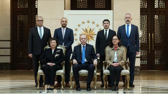Büyükelçilik mensupları ve aile fertlerini takdim eden büyükelçiler, Cumhurbaşkanı Erdoğan ile hatıra fotoğrafı çektirdi.