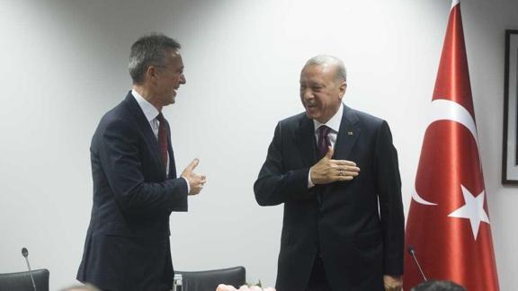 Başkan Erdoğan, konuşmasının ardından NATO Genel Sekreteri Jens Stoltenberg'i kabul etti. Kabulün ardından düzenlenen ortak basın toplantısının sonunda Erdoğan ile Stoltenberg'in tokalaşmaması dikkati çekti.