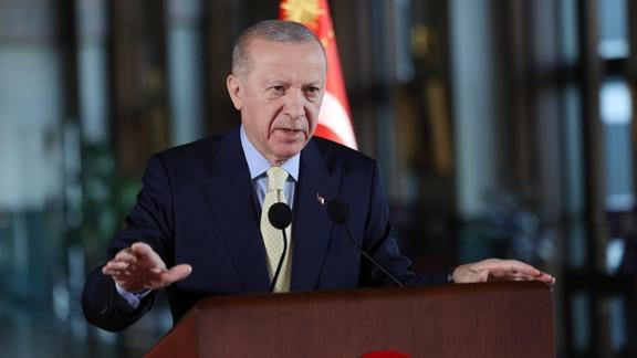 Kuzeyinden güneyine, doğusundan batısına Türkiye'nin etrafında, merkezinde barış ve güvenliğin olduğu yeni bir iklimin hakim olması gerektiğine inandıklarını belirten Erdoğan, "Gazze'de zulüm ve katliam son bulsun, Suriye 14 yıldır hasretini çektiği huzur ortamına kavuşsun, Rusya-Ukrayna Savaşı bir an önce adil bir barışla nihayete ersin istiyoruz. Bunları da öyle birileri gibi laf olsun diye söylemiyor, tüm kalbimizle barışa inandığımız için her fırsatta vurguluyoruz. İnşallah bunun için çalışmaya, bunun için mücadele etmeye, bunun için sorumluluk almaya devam edeceğiz." ifadesini kullandı.