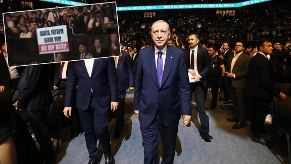 Salona girdiği anda büyük bir coşkuyla karşılanan Erdoğan'ın konuşma yapmak için kürsüye çıktığı sırada gençlerin ellerindeki dövizler dikkatlerden kaçmadı.