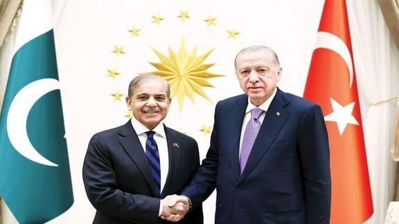 Başkan Erdoğan, Türkiye'ye resmi ziyarette bulunan Pakistan Başbakanı Şahbaz Şerif'i kabul etti. Erdoğan ve Şerif daha sonra ortak basın toplantısı düzenledi. Başkan Erdoğan, "Hemen her konuda uyum içinde hareket ettiğimizi görmekten memnuniyet duyuyoruz. Pakistan'ın Filistin konusundaki kararlı duruşunu tebrik etmek istiyorum" dedi. Şahbaz Şerif de, Başkan Erdoğan'a teşekkür ederek "Büyük bir lider sadece cesur olmakla kalmaz ama aynı zamanda halkların kalbini kazanan kişidir. Çok sevgili kardeşim, Sayın Erdoğan, siz bu büyüklüğü temsil ediyorsunuz. Türk halkını bir araya getirmekteki rolünüz ve muhteşem bir geleceğe taşıma rolünüz gerçekten çok büyük bir mücadelenin hikayesidir" ifadelerini kullandı.Başkan Erdoğan ve Şahbaz Şerif kapsamlı görüşmenin ardından ortak basın toplantısı düzenledi.