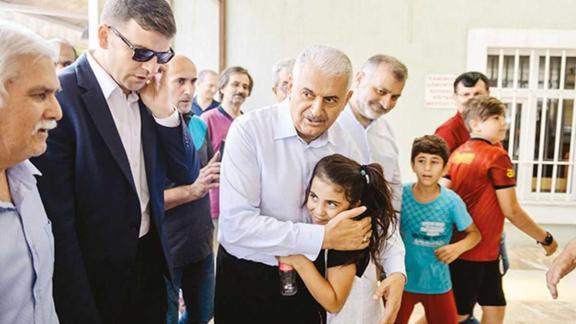Yıldırım ilk olarak, “Burası bizim mahallemiz, Aydınlı Köyü Mahallesi. Artık mahallemizle daha çok meşgul olma fırsatımız olacak. Komşularla bir araya geldik, cumayı eda ettik. Şimdi de çay ikram edecekler, onu bekliyoruz” dedi. Yıldırım, seçimin ardından neler yapılacağının sorulması üzerine, “Seçim bitti, hayat devam ediyor” diye konuştu. “Tatile çıkacak mısınız?” şeklindeki soruya ise Yıldırım, “Bundan güzel tatil mi var? Vatandaşlarla beraber mahallemizde” diye yanıt verdi. Ardından gazetecilere, “Artık siz çok yoruldunuz, sizin de biraz tatil yapmanız lazım” dedi. Binali Yıldırım, burada bulunan kız çocuklarını yanına çağırdı ve “Torunlar burada yok, torun bende fazla” dedi.