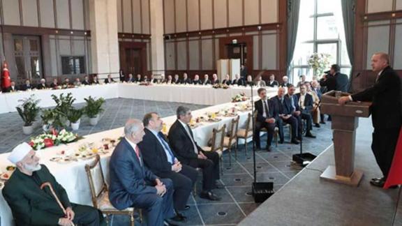 Cumhurbaşkanı Recep Tayyip Erdoğan, Cumhurbaşkanlığı Külliyesi'nde Doğu ve Güneydoğu Anadolu bölgelerinden bazı kanaat önderlerini kabul etti.