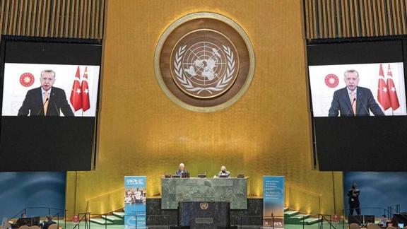 75. BM Genel Kurul genel görüşmeleri kapsamında Başkan Recep Tayyip Erdoğan, BM ülkelerine seslendi. Doğu Akdeniz’de yaşanan gerilimle ilgili değerlendirmelerde bulunan Erdoğan, Akdeniz’de sorunların çözümü için bölgesel bir konferans toplanması önerisinde bulundu. Doğu Akdeniz’de bir süredir yaşanan gerilimin gerisinde, “kazanan hepsini alır” anlayışıyla hareket eden ülkeler bulunduğunun altını çizen Erdoğan, “Ülkemizi dışlama amaçlı nafile adımların başarı şansı kesinlikle yoktur. Bizim ne Doğu Akdeniz’de ne de başka bir bölgede, kimsenin hakkında, hukukunda, meşru çıkarlarında gözümüz bulunmuyor. Ancak, ülkemizin ve Kıbrıs Türklerinin haklarının çiğnenmesine, çıkarlarının yok sayılmasına da göz yumamayız” dedi.
