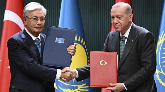 Kazakistan Cumhurbaşkanı Tokayev, altın asrını yaşayan Türkiye'nin yeni çağa emin adımlarla ilerlediğini belirterek, "Bizim maksadımız bir. Bu halklarımızın işbirliğinin güçlenmesi, başarıların çoğalması, bugünkü zor dönemde orta hedefe ulaşmak için güçlerimizi birleştirmemizin önemi büyük" dedi.