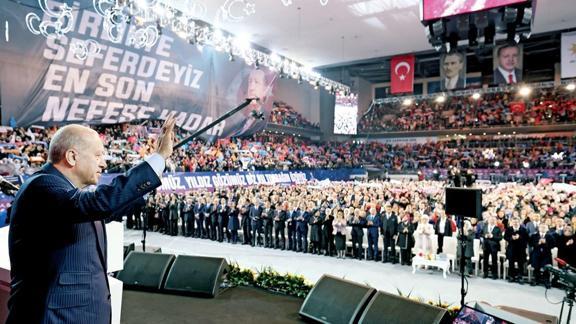 Muhalefetin kurultayları tasfiye aracı olarak kullanırken, kendilerinin ise yenilenerek kardeşliği daha da perçinlediklerini söyleyen Erdoğan, "Ne büyük bahtiyarlık ki bizim kongrelerimizde yumruklar değil, yürekler konuşuyor. Kongrelerimizde gönüller buluşuyor, kalpler kucaklaşıyor. Hiçbir kargaşanın, düzensizliğin, saygısızlığın yaşanmadığı, sandalyelerin ve hakaretlerin havada uçuşmadığı kongrelerimizi şölen havasında tamamlıyoruz. Bizim mücadelemiz kişisel kariyer mücadelesi değildir. Türkiye'yi yüceltmenin mücadelesini veriyoruz. Biz kısa mesafe koşucusu değiliz. En tepeden en ücra birimine kadar hepimiz ülkeye ve millete hizmet davasının neferleriyiz. Millete hizmet yolunda kırılmak, darılmak, küsmek, yarıştan kopmak gibi bir lükse, şahsım dahil hiçbirimiz sahip değiliz" diye konuştu.
