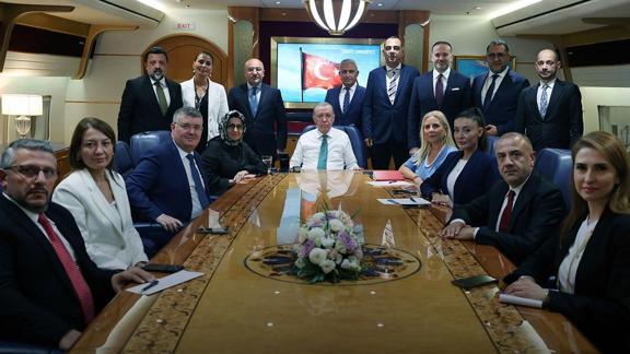 Başkan Erdoğan, Katar dönüşü uçakta TürkMedya Ankara temsilcisi Melik Yiğitel'in de aralarında bulunduğu gazetecilerin sorularını cevapladı.