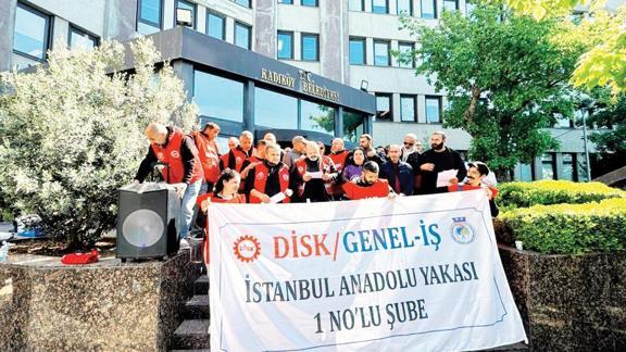 DİSK Genel-İş Sendikası İstanbul Anadolu Yakası 1 No'lu Şubesi üyeleri ve işçiler, "Sefalete teslim olmayacağız", "İşçilerin birliği sermayeyi yenecek" ve "Zafer direnen emekçinin olacak" şeklinde sloganlar attı. Grup adına açıklama yapan Şube Sekreteri Sekreteri Uğur Yelen, geçen yıl temmuz, ağustos, eylül ve ekim aylarından kalan maaş, mesai ve yemek farklarını halen alamadıklarını söyledi. Yelen, "18 Kasım 2024'te işçinin iradesi yok sayılarak imzalanan toplu sözleşmede, bu ödemeler için 4,5 aylık süre verilerek, 2 Nisan 2025'e ötelenenler hala ödenmedi. Yemek paramız için, ailemizden ödün vererek çalıştığımız mesailer için, 10 aydır enflasyon karşısında eriyen alacaklarımız için dilencilik yapmak istemiyoruz" dedi.