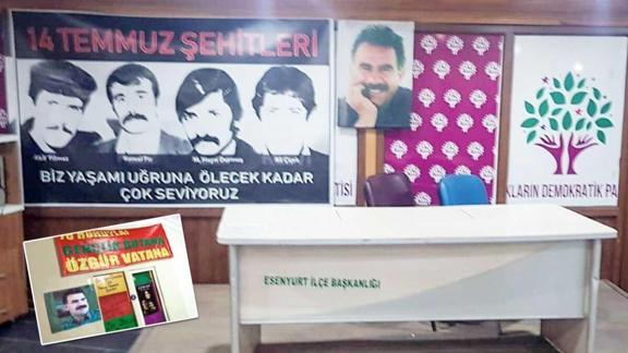 CHP’li Esenyurt Belediyesi, koronavirüs tedbirleri kapsamında HDP Esenyurt İlçe Başkanlığı binasında yaptığı dezenfekte çalışması sırasında çekilen fotoğrafları sosyal medyadan paylaştı. Belediyenin paylaştığı fotoğraflarda teröristbaşı Abdullah Öcalan’ın fotoğraflarının yer alması üzerine polis ilçe binasına operasyon düzenledi.
