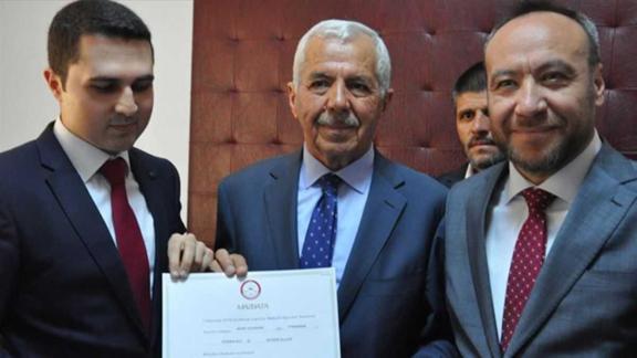 AK Parti İl Başkanı Nuh Dağdelen, Dede Yıldırım ve çok sayıda partili, İlçe Seçim Kuruluna geldi. Hakim Çağatay Atila, Yıldırım'a mazbatasını verdi.