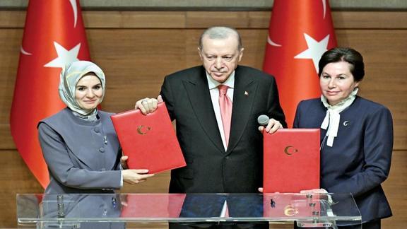 Aile ve Sosyal Hizmetler Bakanı Mahinur Özdemir Göktaş ve Kamu Görevlileri Etik Kurulu Başkanı Zerrin Güngör (sağda) işbirliği protokolü imzaladı.