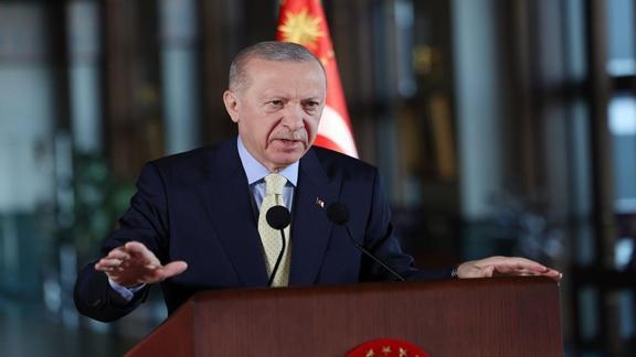 Yıllardır istikrarsızlıklarla ve çatışmalarla boğuşan bölgede yeni krizlerin ortaya çıkmasını asla arzu etmediklerini belirten Erdoğan, kuzeyinden güneyine, doğusundan batısına Türkiye'nin etrafında, merkezinde barış ve güvenliğin olduğu yeni bir iklimin hakim olması gerektiğine inandıklarını söyledi. Erdoğan, "Gazze'de zulüm ve katliam son bulsun, Suriye 14 yıldır hasretini çektiği huzur ortamına kavuşsun, Rusya-Ukrayna Savaşı bir an önce adil bir barışla nihayete ersin istiyoruz. Bunları da öyle birileri gibi laf olsun diye söylemiyor, tüm kalbimizle barışa inandığımız için her fırsatta vurguluyoruz. İnşallah bunun için çalışmaya, bunun için mücadele etmeye, bunun için sorumluluk almaya devam edeceğiz" diye konuştu.