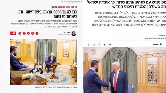 Dış basın, Tel Aviv'in görüşmeden rahatsız olduğunu belirtirken, İsrail medyasında ise Trump'ın "Türkiye'yi tercih ettiği" yorumları yapıldı. Haberlerde, İsrail Başbakanı Binyamin Netanyahu'nun Suriye'ye yönelik yaptırımların kaldırılmaması için çaba sarf ettiği ancak başarısız olduğu öne sürüldü. Hayfa Üniversitesi Ortadoğu uzmanı Prof. Amaziah Baram, İsrailli Maariv gazetesine yaptığı açıklamada, "Trump, İsrail Başbakanı'nın tutumuna aykırı olarak Şara ile görüştü. Bu sadece Suriye meselesi ile ilgili değil, Türkiye'nin İsrail'in önünde tutulması çok büyük bir sorun" dedi.