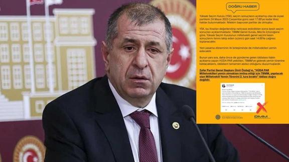 Zafer Partisi Genel Başkanı Ümit Özdağ'ın, "HÜDA PAR Milletvekilleri yemin etmekten imtina ettiği için TBMM, yapılacak olan Milletvekili Yemin Törenini 2. tura bıraktı" iddiası doğru değildir.