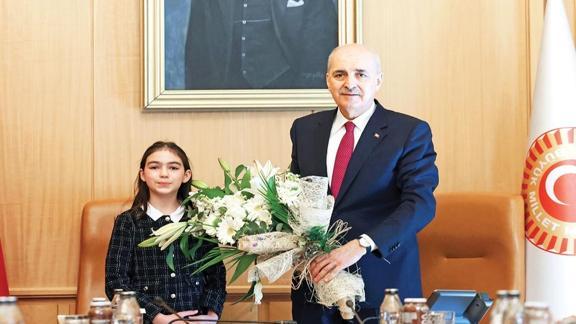 Meclis Başkanı Kurtulmuş, TBMM Başkanlık makamını 4. sınıf öğrencisi Berra Koramaz'a devretti.