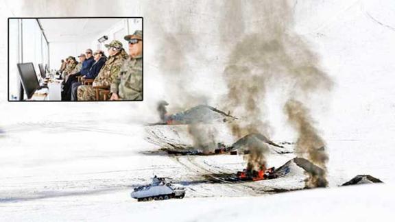 Eksi 17 derecelik görev irtifasında uçan Bayraktar TB2 SİHA, 5 kilometre uzaktaki hedefi 18 bin feet yükseklikten tam isabetle vurdu. Gözlem kuleleri ve yatacak odaların yapımı için 100 ton kar kullanıldı.