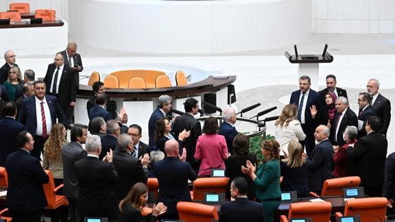 Hüküm okunurken Başkanlık Divanındaki TBMM Katip Üyesi ve AK Parti Mersin Milletvekili Havva Sibel Söylemez yerinden ayrıldı.