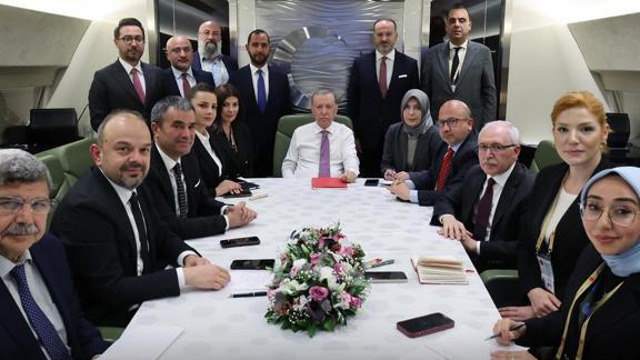 Başkan Recep Tayyip Erdoğan, Macaristan ziyareti dönüşü uçakta aralarında Akşam Gazetesi Yazarı Hikmet Genç ve 24 TV programcısı Belkıs Kılıçkaya'nın da bulunduğu gazetecilerin sorularını cevapladı, önemli değerlendirmelerde bulundu.