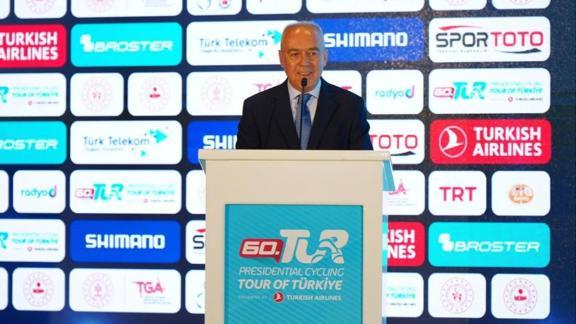 Türkiye Bisiklet Federasyonu Başkanı Emin Müftüoğlu: "Bugün çok heyecanlıyım. Tur'un 50. Yılını yaptığımız dönemi hatırlıyorum. 50. yıl organizasyonunda birçok yenilik ve farklı bir heyecan vardı. 100 yılın ikinci yarısı için start alıyoruz sloganıyla başlayarak 60. Yıla geldik ve aynı heyecanı duyuyoruz. 2008'de TRT ile ilk kez ekranlara taşınan TUR, Türkiye'de bisiklet algısının değişmesine büyük etki yaptı. Türkiye'de bisiklet farklı bir boyuta geldi. 2008'de bisiklet satış adetleriyle bugün aradaki farkı görebiliyoruz. Gittikçe yükselen bir trend var. Ülkemizde sadece sportif bir organizasyon değil, ülkemizin tanıtımıyla ilgili de önemli bir TUR düzenliyoruz. Konya'daki velodromumuz ve madalyalarımız da başarılarımızın bir kanıtı. Dünya Kupası'na Konya'da ev sahipliği yaptık. Ülkemizin tanıtım anlamında da ciddi haber değeri oldu. Bisikletin gelişimiyle ilgili, tanıtımla ilgili çok önemli gelişmeler bunlar. Bir turun ötesidir bu yarış. Hem sportif hem de tanıtım anlamında çok önemli bir 60. yıl yarışı yapacağız. 60 yıldır medyanın desteği çok büyük, sizlerle birlikte bugünlere geldik. Bu tur umarız ki 60 değil, 100. senesinde de yapılacak. 60 yılda sadece pandemi hariç kesintisiz devam etti. Her turun ayrı bir hikayesi var. Türkiye olarak tüm kurumlarıyla büyük emek verdik. Bisiklet turizminde de bakanlığımızın önemli girişimleri var. Ülke olarak bu konuda tüm kurumlarımızla sinerji içerisinde çalışıyoruz" dedi.