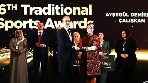 Kazakistan'da geçen yıl eylül ayında yapılan 5. Dünya Göçebe Oyunları'nda geleneksel okçuluk branşında altın madalya kazanan milli sporcu Ayşegül Demirbağ Çalışkan, forumda aldığı ödül hakkında, "Gerçekten çok teşekkür ediyorum. Duygularım çok yoğun." şeklinde konuştu.
