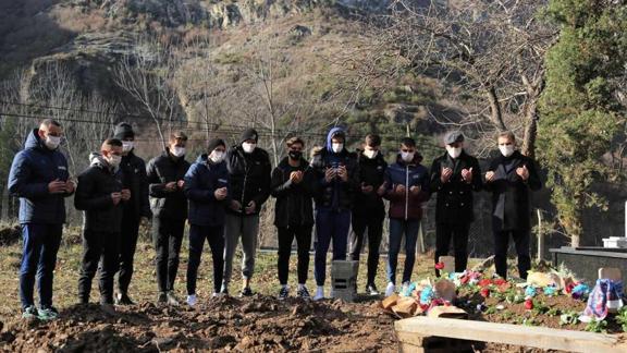 Hatayspor ile oynanan müsabakadan dolayı cenaze törenine katılamayan teknik direktör Abdullah Avcı ve futbolcular, Özkan Sümer için dua etti.