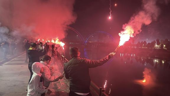Seyhan Nehri kıyısında toplanan taraftar grupları, havai fişek atarak meşaleler yaktı. Nehrin üzerindeki yaya köprüsüne "Demirspor'a sahip çık Adana" pankartı asan mavi-lacivertli taraftarlar, tezahüratlarla kuruluş yıl dönümünü kutladı.