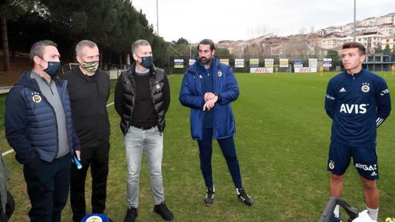 Fenerbahçe Başkanı Ali Koç ile Yönetim Kurulu Üyeleri Mustafa Kemal Danabaş ve Selahattin Baki, dün sarı-lacivertli takımla bir araya geldi. Sportif Direktör Emre Belözoğlu'nun da yer aldığı ziyarette Ali Koç, oyuncuları 4-1 kazanılan Medipol Başakşehir maçında ortaya koydukları mücadeleden dolayı tebrik etti.
