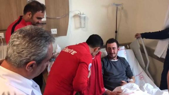 Reyhanlı Devlet Hastanesi ve Hatay Devlet Hastanesinde tedavi gören yaralılara beraberindekilerle ziyarette bulunan Çakmak, Mehmetçiklere milli takım forması hediye etti.