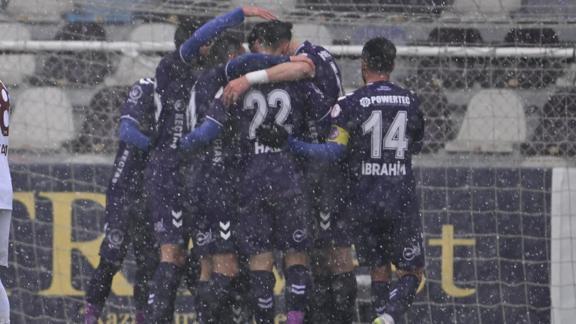 Hakem Asen Albayrak, kar yağışı dolayısıyla 21. dakikada maçı durdurarak ceza sahası çizgilerinin temizlenmesini istedi.