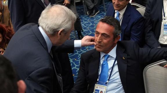 Fenerbahçe eski başkanları Aziz Yıldırım ile Ali Koç arasında, kürsü konuşmaları sonrası diyalog dikkat çekti. Yıldırım, konuşmasının ardından Koç'un yanına gelerek "Beni unut" derken, Koç da "Sağlığınıza çok üzülüyorum, Allah yardımcınız olsun" yorumunu yaptı.