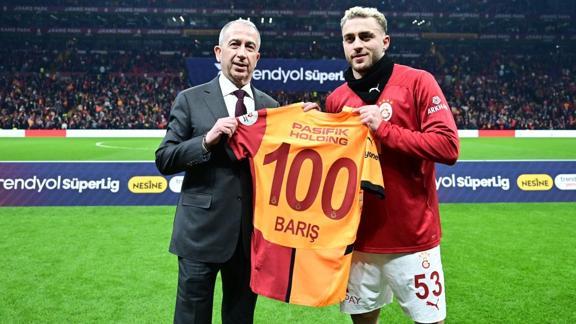 Galatasaray formasıyla Süper Lig'de 100 maça çıkan Barış Alper Yılmaz'a plaket takdim edildi.