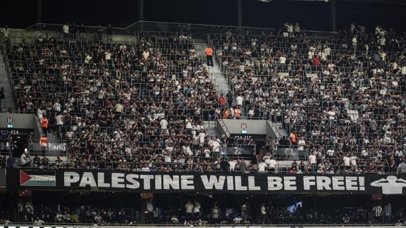 Beşiktaş-St. Patrick's maçı öncesinde doğu tribüne Filistin'e destek pankartı asıldı.