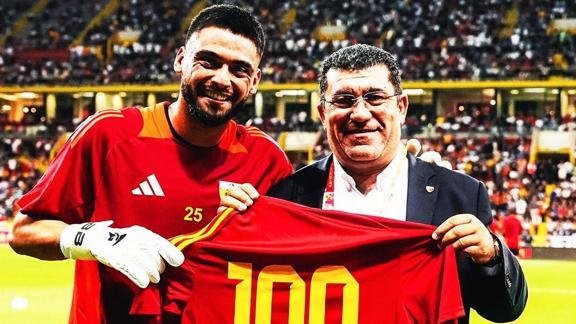 Galatasaray maçı öncesi Kayserispor Başkanı Nurettin Açıkalın; sarı kırmızılı takımda 100. maçına çıkan oyuncusu Bilal Bayazıt'a üzerinde ismi yazılı 100 numaralı forma ile plaket hediye takdim etti.