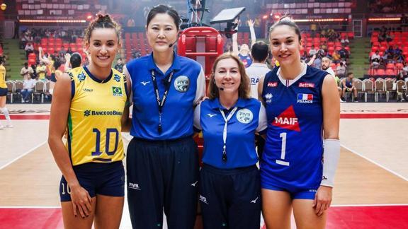 Tayland'ın başkenti Bangkok'ta düzenlenen Kadınlar Dünya Voleybol Şampiyonası'nın çeyrek finalinde Brezilya, Fransa'yı 3-0 yenerek yarı finale yükseldi.