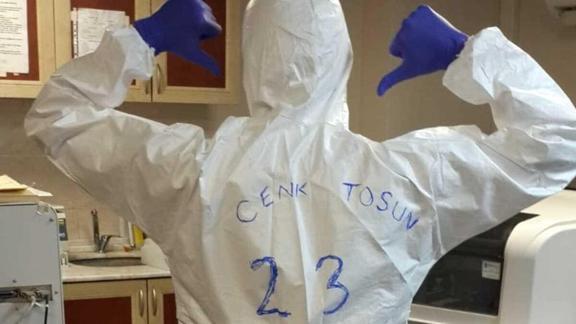 Bir sağlık çalışanın beyaz tulumunun arkasına ’Cenk Tosun 23’ yazdığı fotoğrafı paylaşan milli futbolcu, "Hakkınızı ödeyemeyiz. Sizlere minnettarız" ifadelerine yer verdi. Bu paylaşım kısa sürede binlerce beğeni aldı.