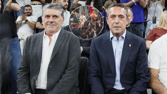 Derbinin son saniyelerinde salonda bir gerginlik çıktı. Siyah-beyazlı taraftarların küfürlü tezahüratının ardından Fenerbahçe Kulübü Başkanı Ali Koç, saha kenarından hızlı adımlarla yöneticilerin bulunduğu locaya doğru yöneldi.