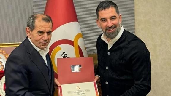 Eyüpspor Teknik Direktörü Arda Turan, Galatasaray üyesi oldu. Mazbatasını Dursun Özbek'in elinden aldı.