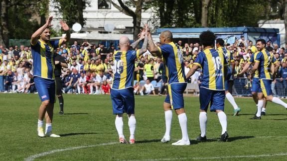 Gelsenkirchen Fenerbahçeliler Derneği'nin organize ettiği ve daha önce Fenerbahçe forması giymiş ünlü oyuncuların yanı sıra Schalke 04'te oynamış ve Almanya Milli Takımı ile dünya şampiyonluğu yaşamış futbolcuların yer aldığı dostluk maçına seyirciler yoğun ilgi gösterdi.