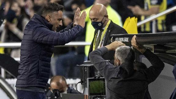 Fenerbahçe Teknik Direktörü Vitor Pereira'nın Olympiakos karşısında sahaya sürdüğü 11 ve maça yaptığı müdahaleler büyük tepki çekti. Sabah'ın haberine göre maçın son anlarında tribünlerden Vitor Pereira'nın olduğu yere su bardakları atıldı. Yedek kaleci Berke Özer de tribünlere 'atmayın' şeklinde tepki gösterdi.